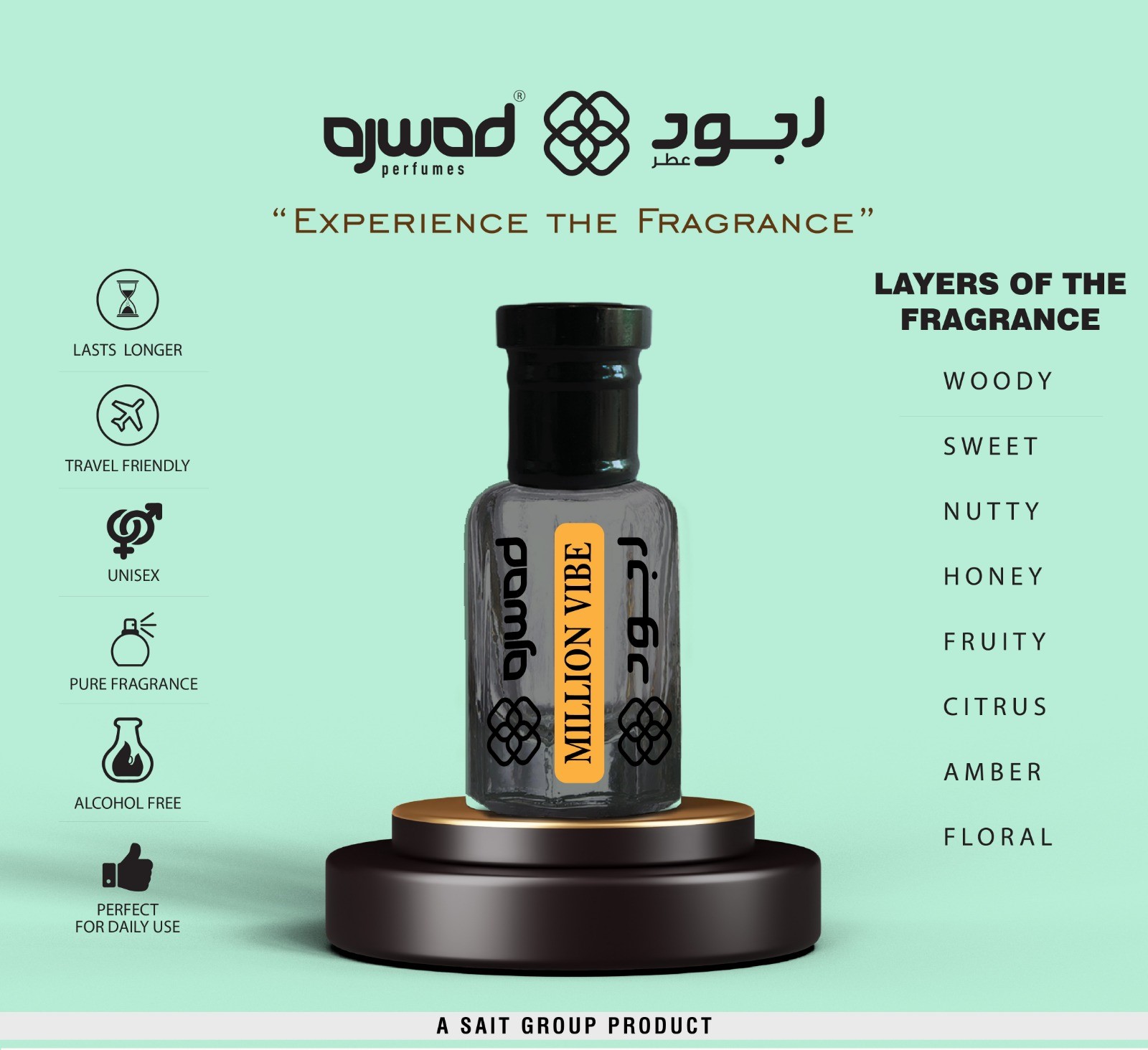 Million Vibe is the perfect scent for any occasion. Boasting an exotic blend of woody, sweet, nutty, honey, fruity, citrus, floral, and amber notes, this travel-friendly fragrance is sure to turn heads and last throughout the day. Ideal for both men and women, Million Vibe is the ultimate everyday scent.