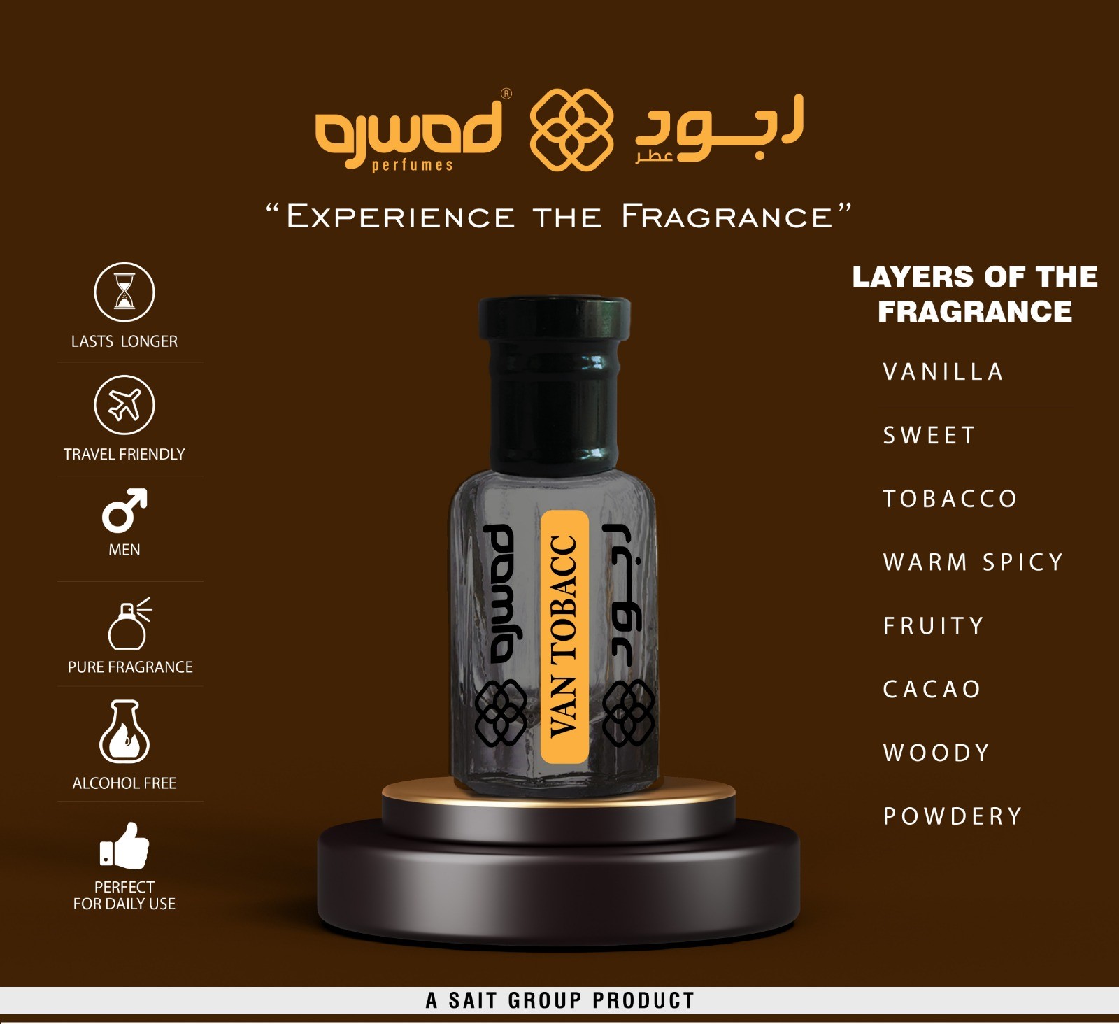 Van Tobacc is the perfect blend of sweet vanilla, warm spicy, fruity, cacao, and woody notes to indulge your senses. This alcohol-free and travel-friendly product lasts longer, making it perfect for daily use. Impress yourself or your loved ones with an extraordinary experience of Van Tobacc – made especially for men.